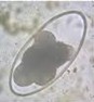 | Coccidia (oocysts) | Calves, lambs, kids and alpacas | Scours sometimes with blood or mucous, dehydration, weight loss, poor coat condition | Protazoan parasite. These are counted separately from other eggs seen in a sample. Treatment is also different. |